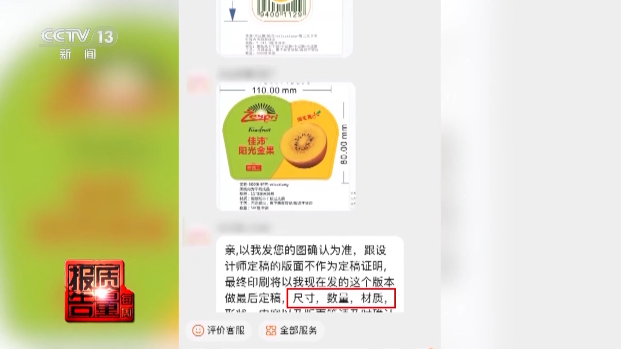 犯罪嫌疑人 海某:因为这个设计是贴在猕猴桃上的,是很多找我们买东西的人。他们会告诉我们,我们应该做一个水果礼盒,然后我们应该贴上这个标签,看看你能不能提供,然后我们开始慢慢给他们做这个标签,贴在礼盒上。