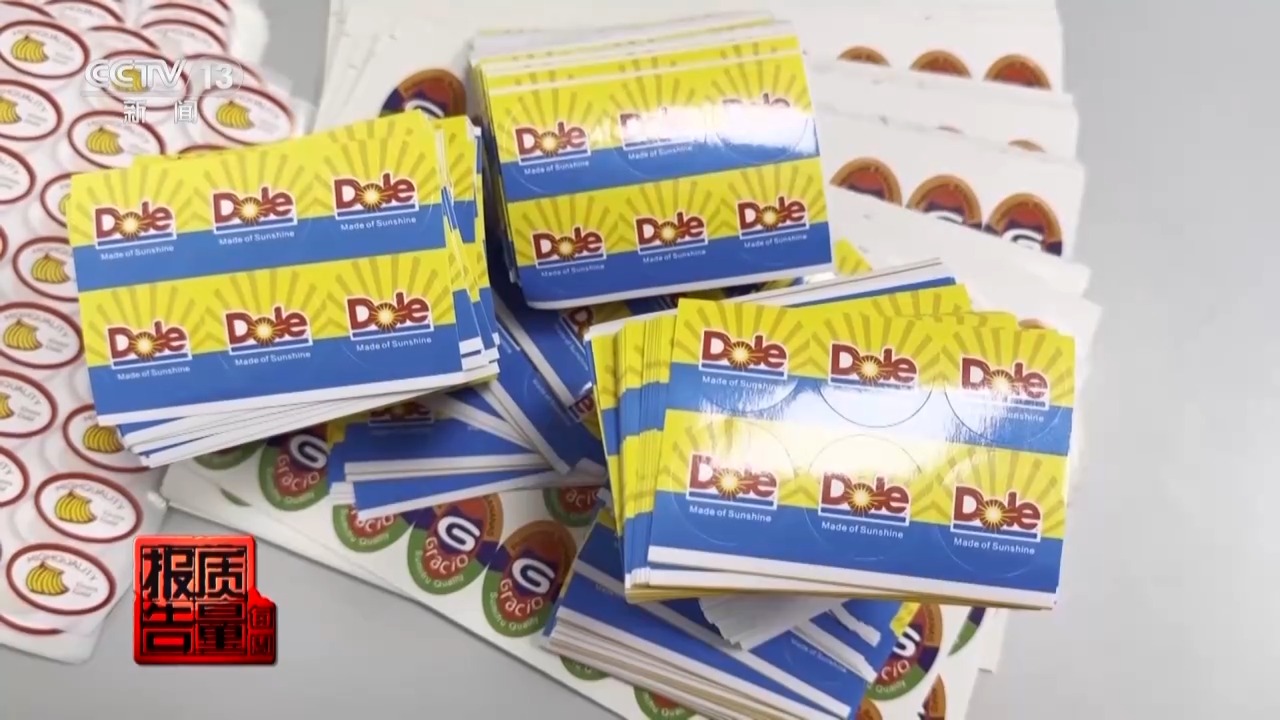 上海市公安局宝山分局经侦支队食品药品环境侦查大队教导员 季敏:一般没有标签的香蕉一般卖2-3元一斤,但是贴了这个标签之后,价格可以涨到4-5元。他一起用了25000个标签。一般来说,如果一串香蕉贴三个,他已经卖了8000多串香蕉。