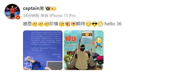 “Hello 三十六”!马龙生日发文:感恩,珍惜,期待。