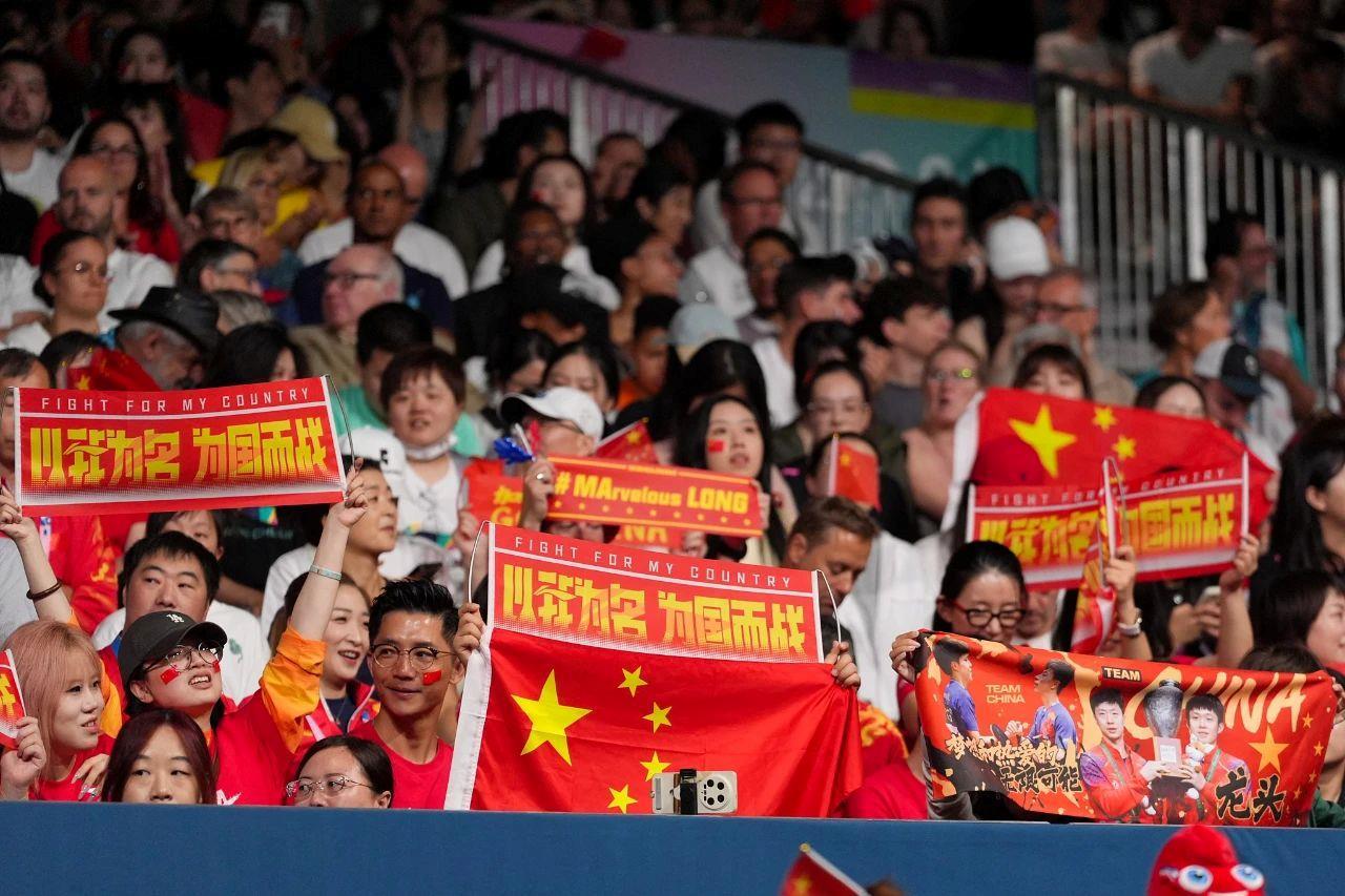巴黎奥运会乒乓球男子团体半决赛结束后,马龙经过观众台,一个外国孩子拿着乒乓球拍要求签名。马龙停下来为他实现他的愿望。然后孩子们大喊“马龙,我爱你”,激动得破音。“六边形战士”马龙是乒乓球的传奇,也是无数粉丝心中的榜样。