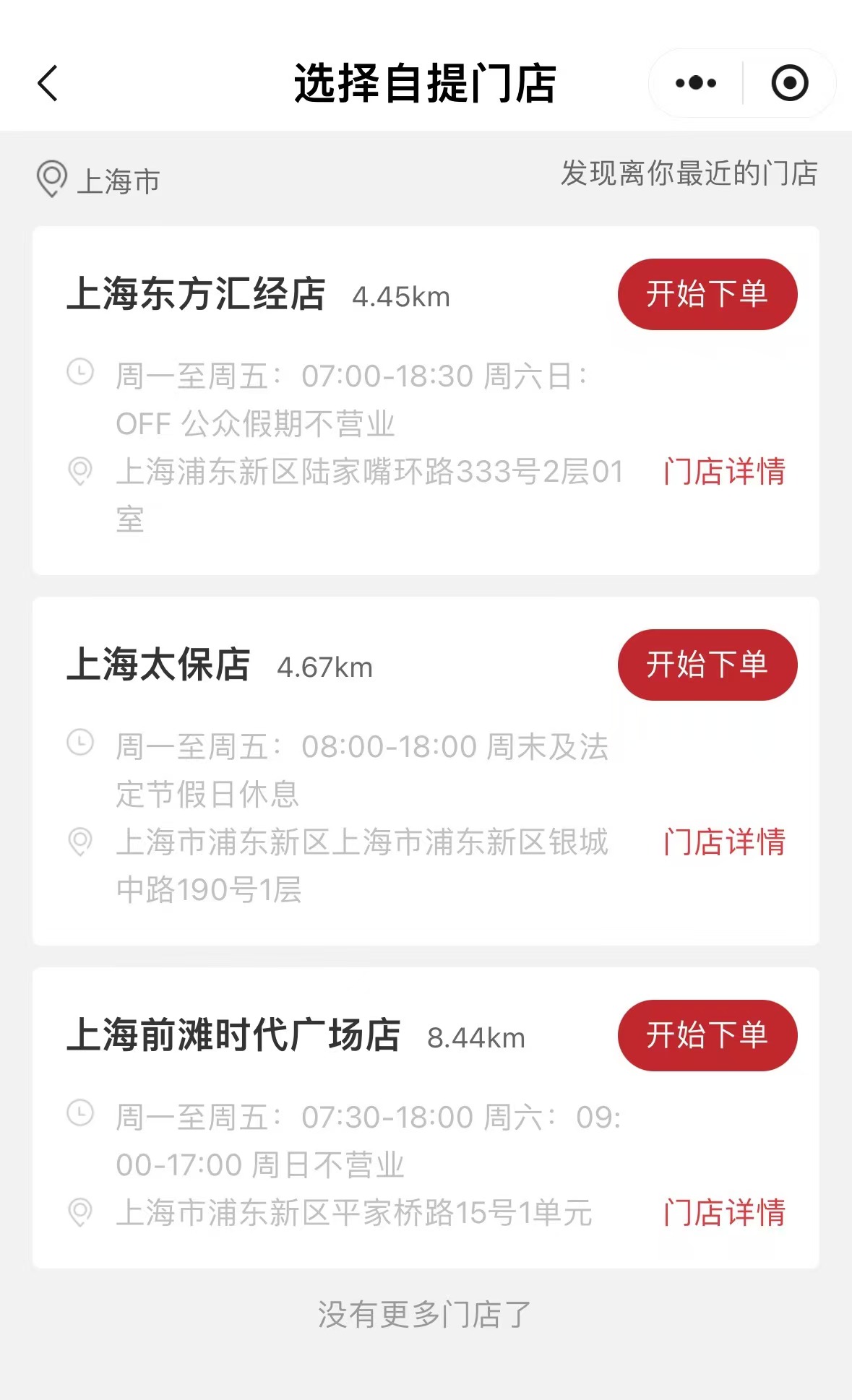本报记者查询上海店铺,发现10月20日星期天,在“太平洋咖啡”的小程序中,虽然可以找到三家店铺的名字,但每家店铺后面都注明“你可以在我们店铺休息的时候换店铺”。那天17点左右,澎湃新闻记者依次拨打了三家商店的电话。无法连接上海前滩时代广场店和上海东方汇经店。上海太保店接线员告诉记者,该店周一至周五营业,周末及法定节假日休息。本报记者注意到,上海前滩时代广场店在品牌小程序上显示的营业时间为周一至周五07。:30-18:00,周六09:00-17:周日不营业,00。和太保店一样,上海东方汇经店也是在周末和法定节假日休息。