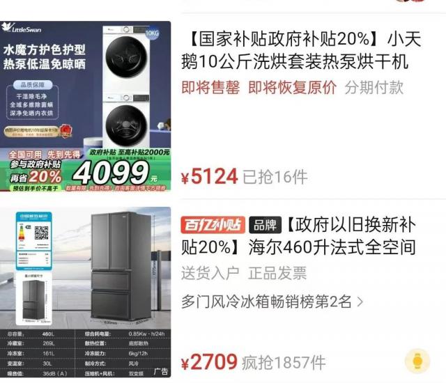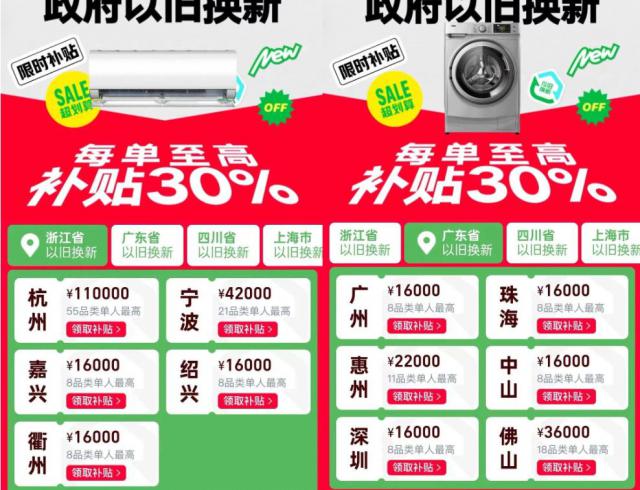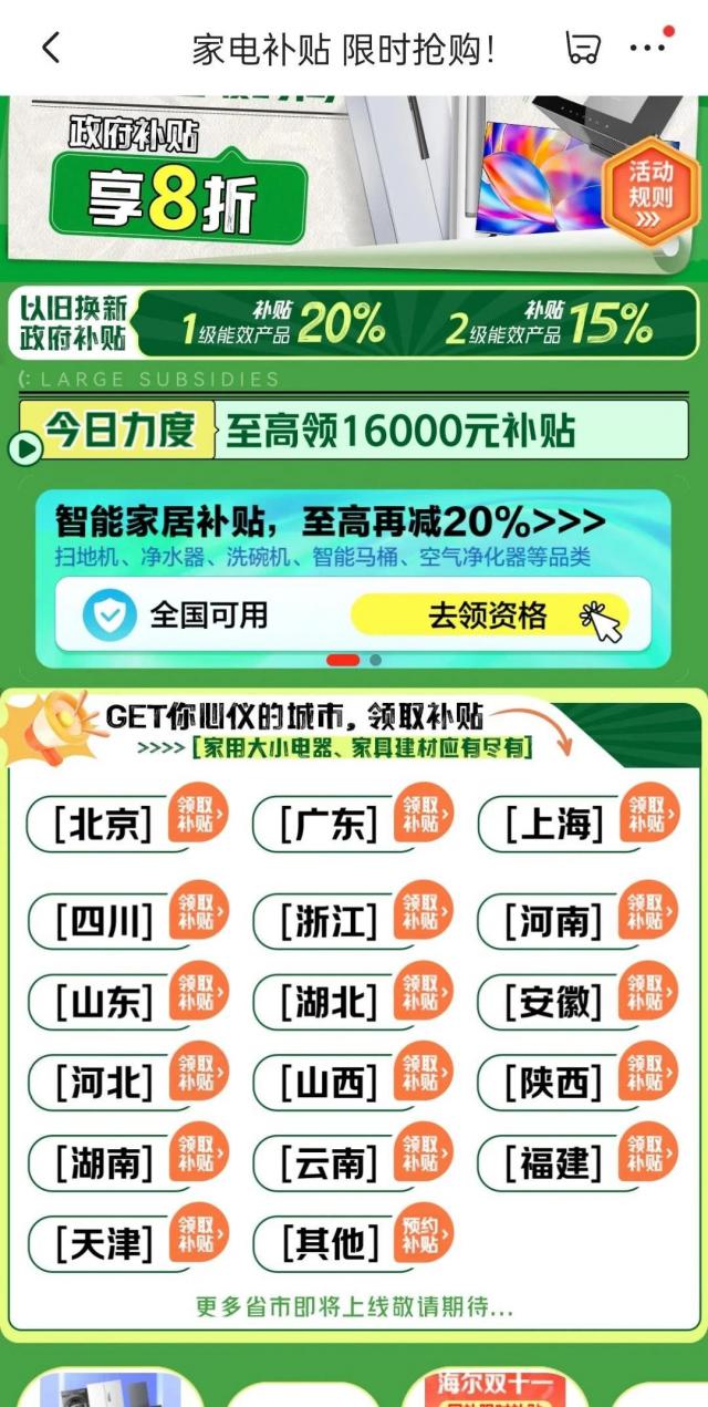 淘宝 / 天猫国家补充活动平淡无奇,目前支持。 10 省级和地区在线参与活动。但是淘宝筛选到真正优惠机型的几率最高。淘宝有两种方式可以找到“新旧置换家电补贴”的模式。