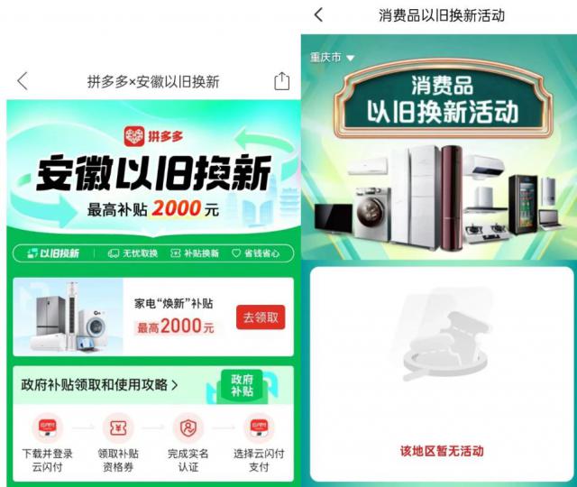 值得注意的是,目前拼多多参与国补的友好地区是安徽,其他地区有可能跳转到失效页面。