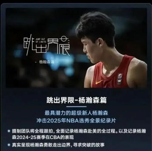 据此前报道,杨瀚森将对冲击。 2025 年 NBA 选秀节目,并将有专业的摄制团队全程拍摄,杨瀚森篇-跳出界限。他正在 CBA 他的进步已经非常有限了,他真的需要更高级的比赛。