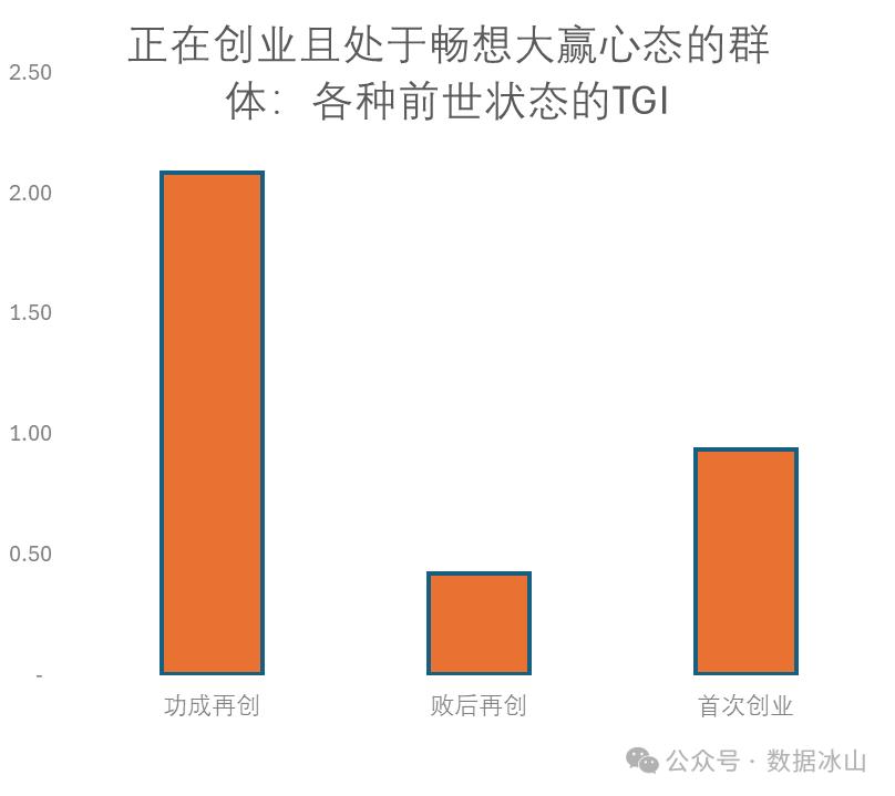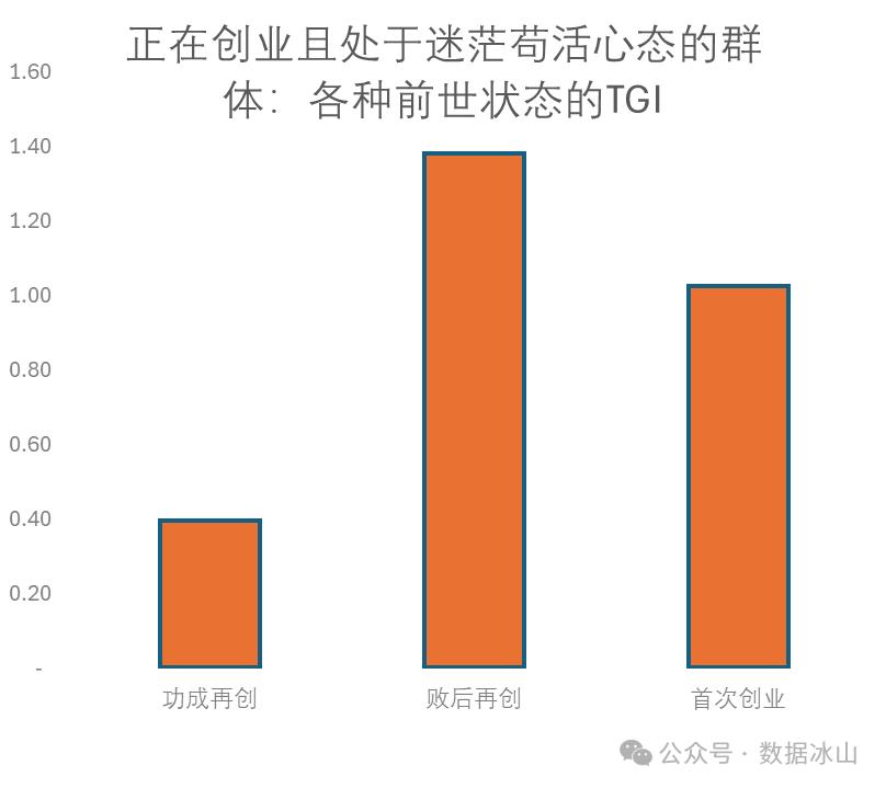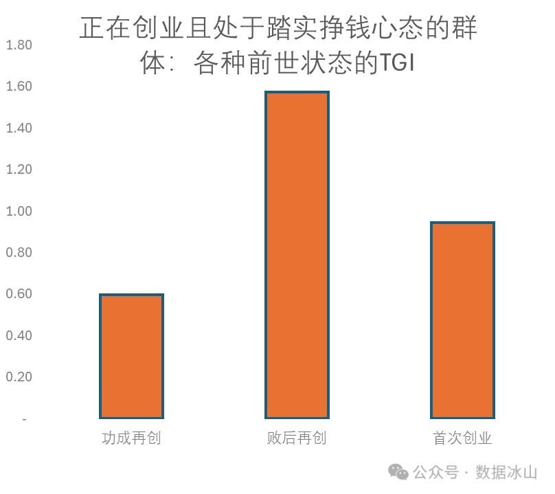 从TGI的角度来看,没有成功经验的企业家有最高的生存趋势,TGI是没有成功经验的企业家的三倍左右。俗话说,受伤后的迷茫和疗伤。