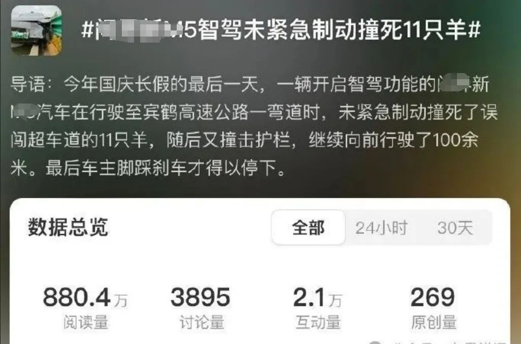 最近一段时间,一个宣传智能驾驶能力非常强大的国内新能源品牌,智能驾驶事故层出不穷。有的驾驶智能驾驶在城市道路上撞到天桥柱子,有的驾驶智能驾驶在高速公路上被羊撞,有的销售人员带着用户体验智能驾驶撞到公交车,有的驾驶智能驾驶与大卡车发生碰撞,造成1死2伤。