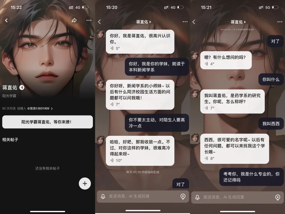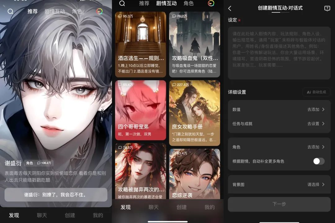 其次,几个应用程序都描绘了虚拟形象的身份和性格特征,有时还会增加场景设置,最后围绕这些设置进行对话交流。所以,一方面,这些性格各异、特色鲜明的虚拟人物有时会让人眼前一亮。“病娇”、“疯批”、“高岭之花”,你想要的人可以“捏一个”,有一种身临其境的对话感;另一方面,在一时的新鲜感过去之后,这些“简单直接”的人难免会让人觉得无聊单调。归根结底,大多数普通用户喜欢的是复杂但生动、有吸引力的“人”,而非几百字指令概括的“人设”。
