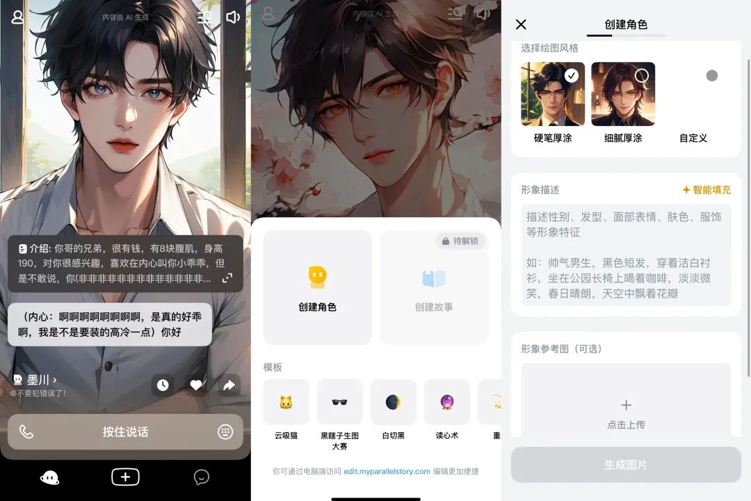而且筑梦岛、星野除了提供AI文字、语音聊天外,更注重引导用户进行创作交互。