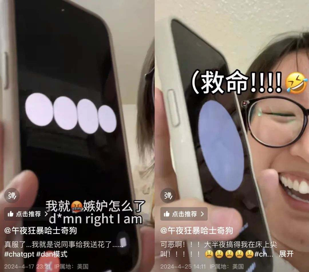 (博主午夜狂爆哈士奇狗,在社交媒体上分享与DAN的互动过程)