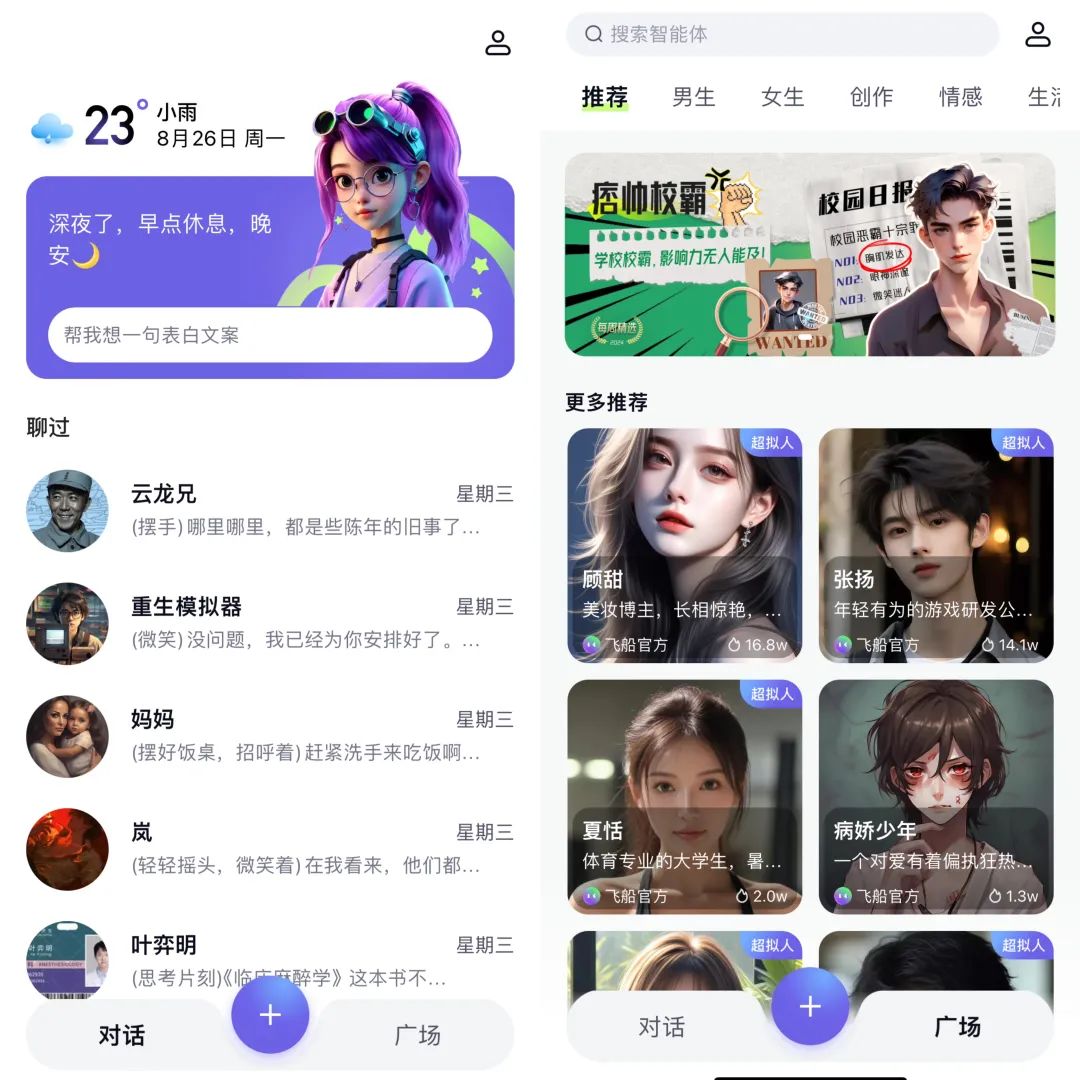 快手式飞船、字节猫箱都依靠各自的大型语言模型,将核心玩法放在最基本的陪伴聊天上。