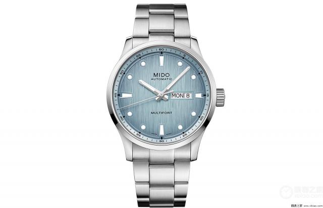 手表评价:先推荐瑞士美度表今年带来的全新高价值力作——舵手系列千禧手表腕表。从整体上看,这款手表非常具有独特的文艺气息,特别适合职场人士佩戴。手表有一个直径为 42 精巧的毫米表壳,清新独特的“冰川蓝”渐变表盘装饰采用垂直丝光打磨图案设计,就像光线照在冰霜上覆盖水面一样。时间指针和圆形和梯形时标涂白色。 Super-LumiNova 莹光材料,确保时间显示清晰易读。此外,3 时间位置还有经典的礼拜和日期窗口。手表里面装着 Calibre 80 自动机芯。该机芯含 25 颗粒晶石,振频 21,600 次 / 小时(3 HZ),安装 Nivachron 具有日内瓦纹和品牌标识的抗磁游丝和双向上弦摆陀,可提供 80 长效动力储存小时。