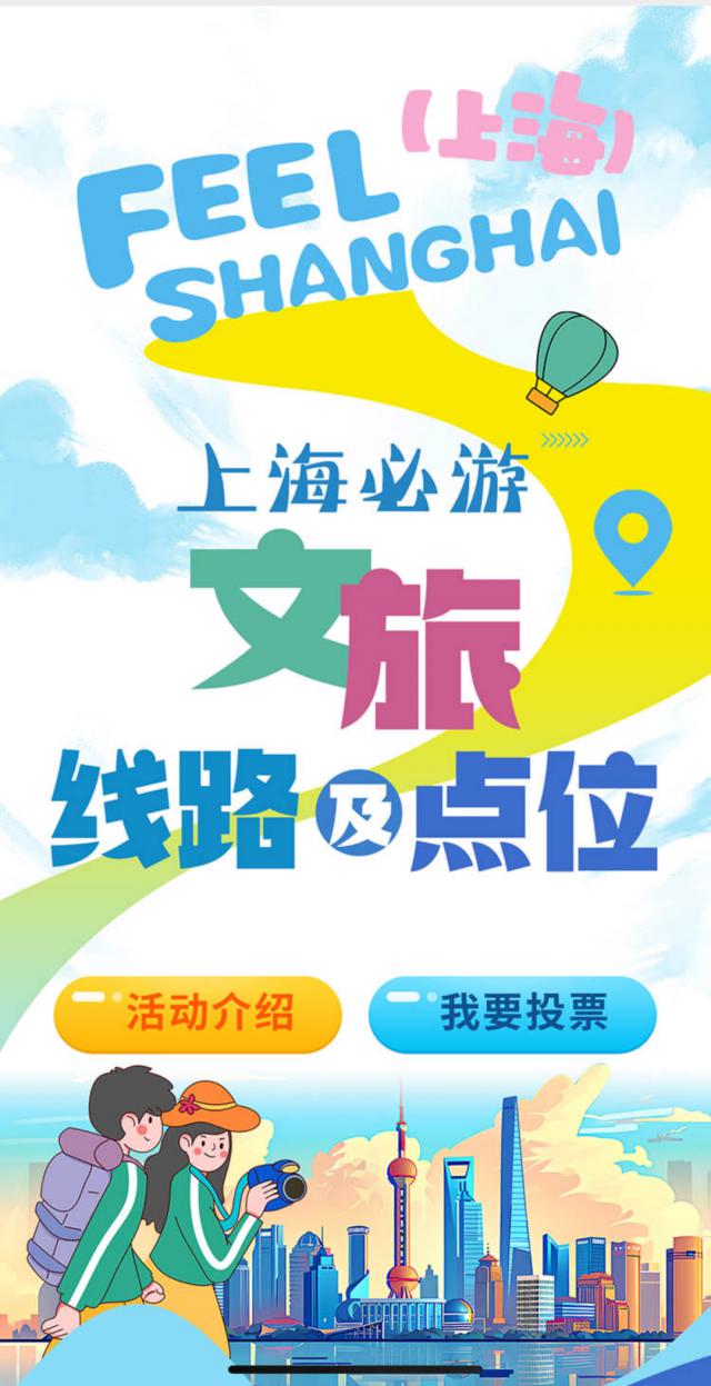 2. 点击“我要投票”,然后点击“上海必游文化旅游线路投票”和"上海必游文化旅游点投票",进入投票通道。