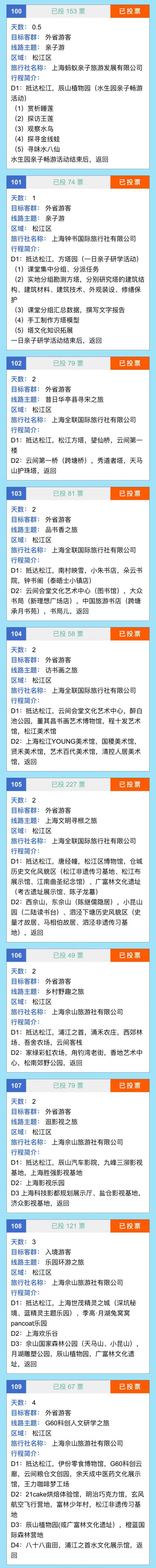 3. 编号为松江区 100-109 文化旅游线路和编号 579-619 文化旅游点投票。