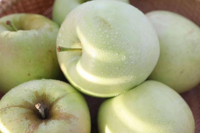 采摘的苹果都是手工挑选的,去除了一个小口感差的次等果。