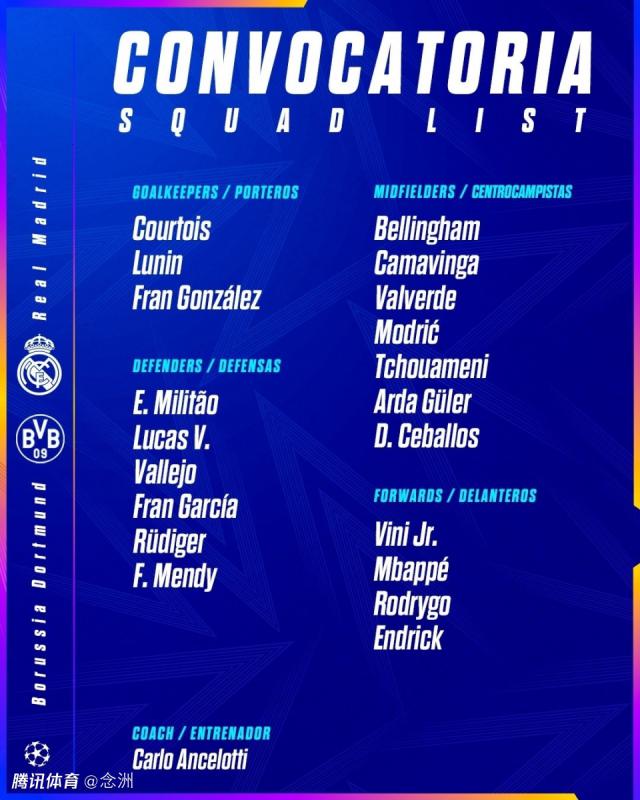 皇马将在周中欧冠对阵多特蒙德,球队正式公布了这份名单,包括姆巴佩、威尼修斯、贝林厄姆、罗德里戈和恩德里克。