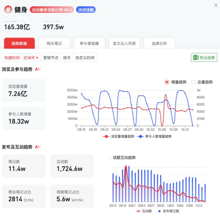 从9月中旬到10月中旬,小红书最大的健身话题#不如健身。经过9月18日的最后一个高峰,它几乎像悬崖一样下降。回顾往年的数据,也呈现出明显的季节变化——秋冬低谷,春夏高峰。