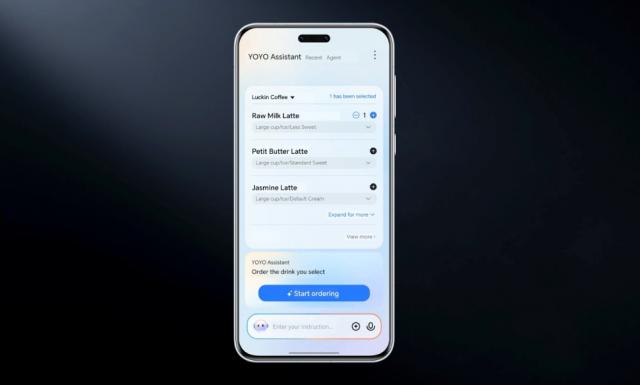 (荣耀 AI 智能机构,推动智能手机产业进入自动驾驶时代。图为“一句话点饮料”示例
