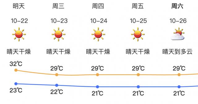 预估周一到周二晴天干燥,中午前后稍热;周三到周日阳光明媚,气温略有下降,天气舒适,北风增大。