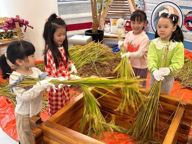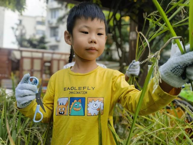 在五原路幼儿园,孩子们走进大自然,和“大米”约会,亲自练习割大米,打大米,感受秋天的仪式感——晒秋天。在老师的带领下,孩子们在秋天的花园里穿梭,在每个角落都感受到秋天的神秘和惊喜。