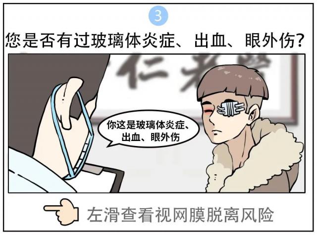 他有点害怕,马上去医院看病。眼科医生诊断是“视网膜脱离”(又称“视网膜脱落”)。幸好来得早,还可以手术治疗,否则可能会有失明的危险。