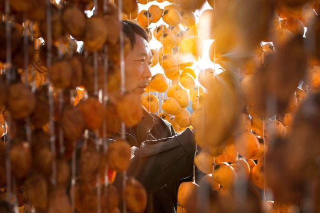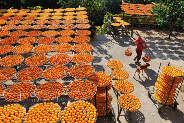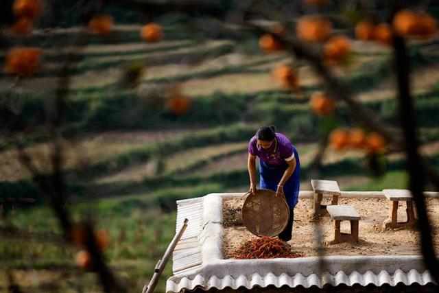 所以,人们也创造了柿饼。农民们的房子前后都是橘红色的柿子,满山遍野都是丰收的色彩。