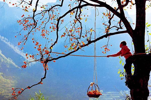 古代人曾经说过,“秋去冬来万物休,只有柿树挂灯笼。要问哪一个怎么不摘,等风霜甜不溜。”
