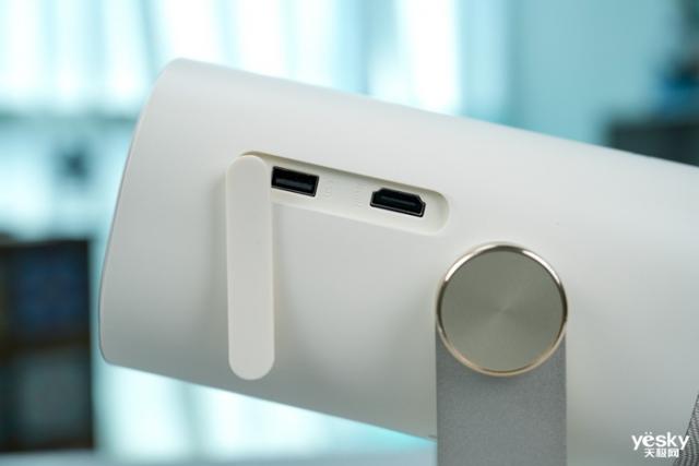 电源接口的设计更有特色,位于机身接口同侧的云台转轴下缘,选择超小型。 USB Type-C 规格。自带包装的适配器标准输出规格为 20V3.25A,即 65W 功率。这意味着用户可以使用多种支持支持 PD 达成充电协议,达到功率 65W 上述充电头为这款便携式投影供电,一些输出功率较大的充电宝也能满足其供电需求。