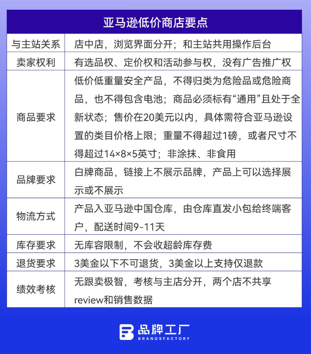 事实上,据品牌工厂了解,亚马逊的低价店铺项目已经在悄然准备中,但第一期的商家很少,所以市场上的消息也很少。