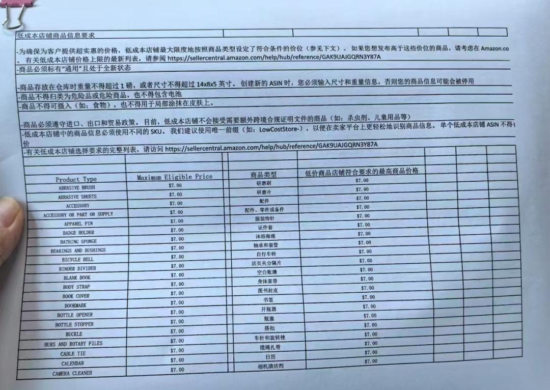 根据品牌工厂获得的信息,亚马逊将低价商店称为“低成本商店”。 尽管亚马逊不会干涉低价商店中商家的定价权,但是对于特定类别的商品都进行了最高限价。 其设定的商品类型价格有几页,规定非常详细,可以算是根据商品类型最大限度地设定了符合条件的价格。