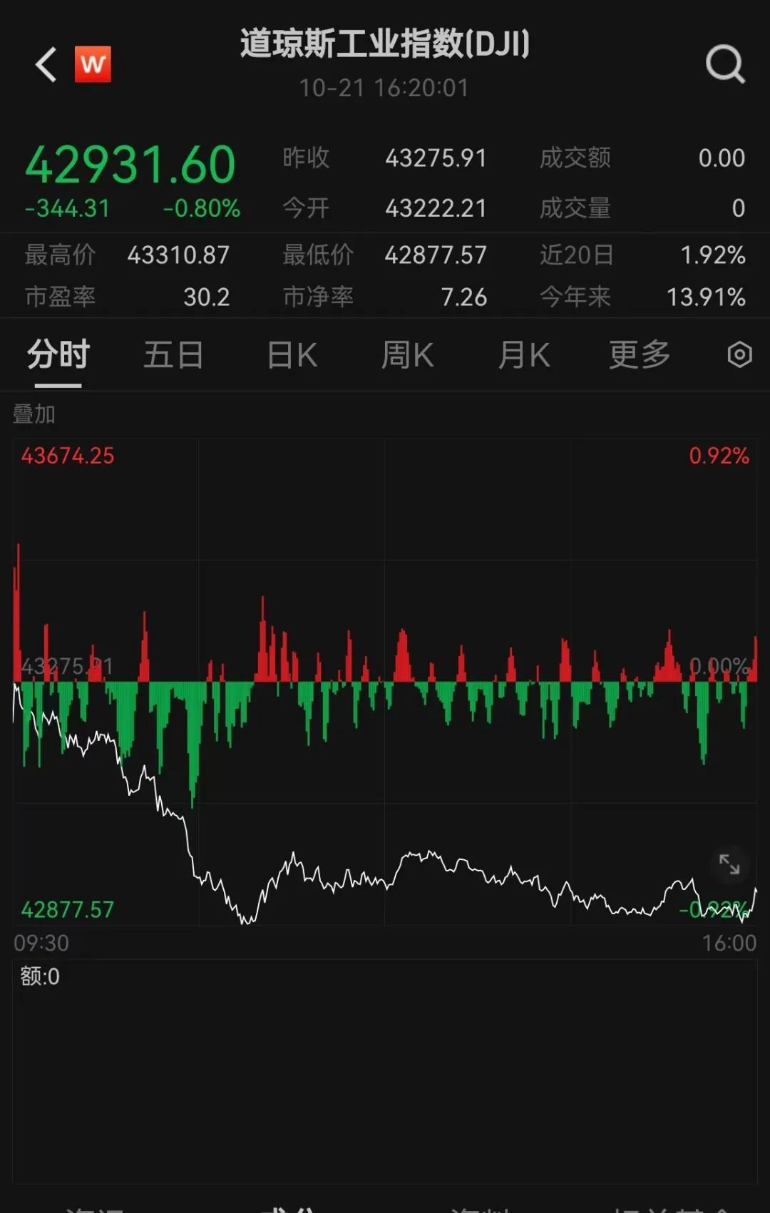 美东时间10月21日,多名美联储官员发表讲话,降低市场对降息的预期。美国三大指数涨跌不一,道德指数大幅下跌,纳斯达克指数翻红。