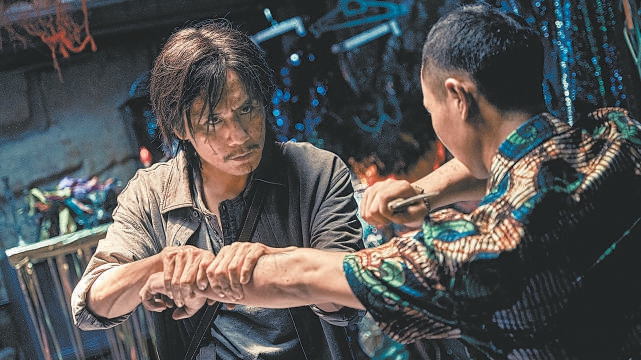 就打拐主题而言,《浴火之路》有点文不扣题,诸如此类的出题,更像是犯罪片或情片。事实上,它的确是按照犯罪片的路径来打造的,而且还是道路犯罪片的打法。崔大路和李红樱是寻子,赵子山是报仇。在电影的前半部分,赵子山的复仇意图没有表现出来,他的阴险和恶毒也没有表现出来。甚至有一段时间,他被崔大路的混乱弄得蓬头垢面。就在观众几乎误以为这是一个悲惨的搞笑角色时,他突然用刀变成了正义的罗煞,不仅成为了崔大路和李红樱的守护神,也几乎成为了全世界被绑架家庭的复仇之神。