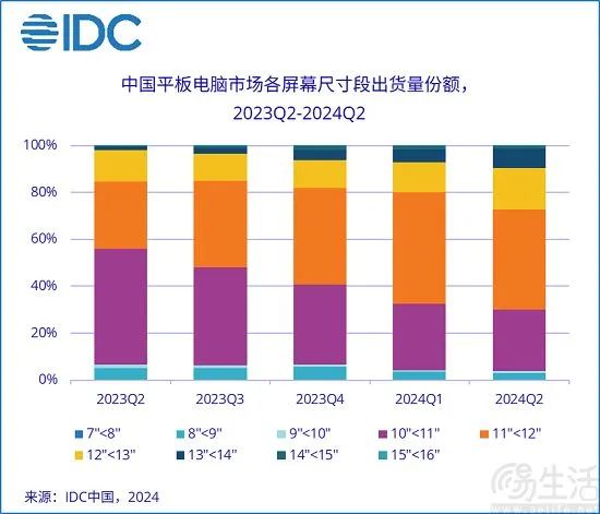 根据调查机构IDC公布的相关数据,2024年第二季度国内平板电脑市场出货量约为720-780万台,呈现增长趋势,但增长主要来自10-14英尺的大屏产品。近年来,凭借更好的视觉体验和更丰富的使用场景,大屏幕平板已经成为市场上的主流产品,而小屏幕型号的市场份额不断萎缩,产品更新速度明显放缓。