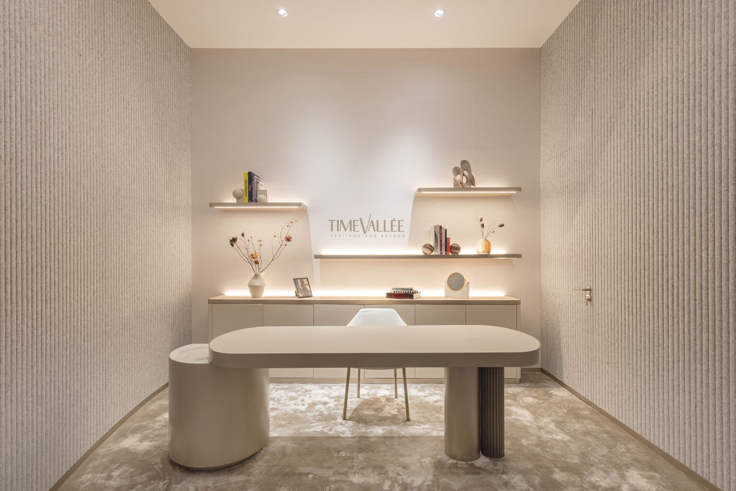 TimeValléE时间天地杭州武林银泰百货旗舰店是中国大陆第一家采用全新设计理念打造的旗舰店,结合历史经典和现代奢华,营造出优雅的审美空间。店内装饰风格精致典雅,品牌标志性金元素搭配大理石花纹路面,灵动蜿蜒的装饰线条为整个空间增添独特的魅力。柔和的光影效果与极具空间感的展示格局相得益彰,将众多时计的美感衬托得淋漓尽致。客户可以在时间天地手表顾问的带领下,对各大手表品牌的精湛技艺和有趣创意进行评价。店内还增加了风尚匠坊和时间服务专属空间,并配有手表技师,为客户提供专业的手表维修保养服务。