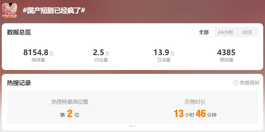 近来,#国产短剧已疯狂。 话题冲到微博热搜前十,话题来自一位博主对《清洁妈妈无限归来》的评论,发布后获得7W。 点赞和7000 评论,相关话题阅读量超过8100W。
