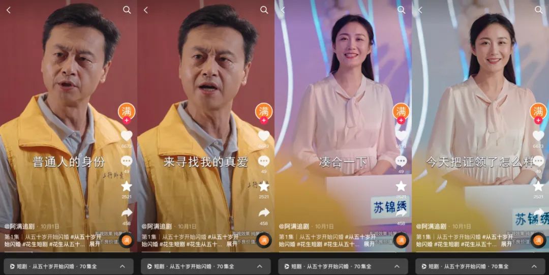 以《一夜幸孕,闪婚妻子宠上天》、《一个50岁的保姆嫁给一个富裕的家庭》为代表的短剧,讲述了主角清洁和霸主的黄昏恋情。在这部短剧中,女主持人到了中年,要么被前夫家吸血,要么为了抚养孩子而变得干净,努力工作。