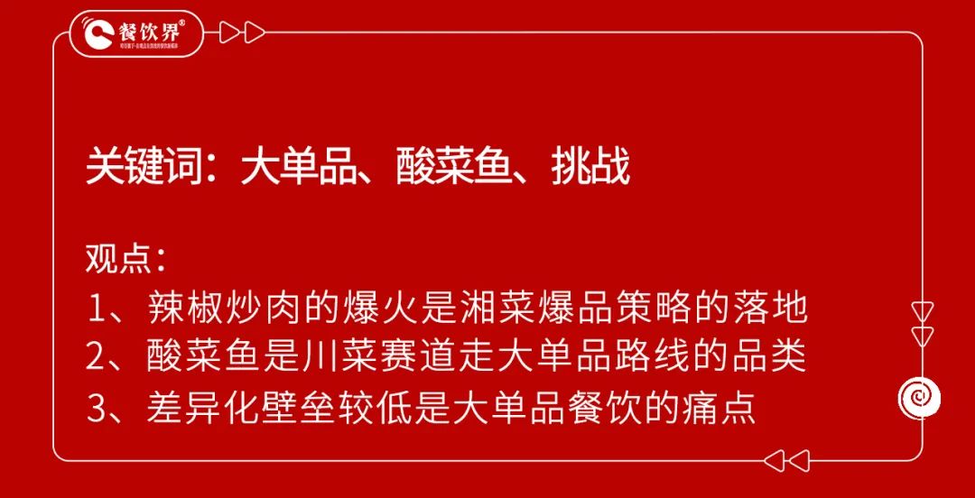 曾经的川菜,现在的湘菜,正是抓住了大单品的流量密码,迅速推动了市场的规模;曾经的腌鱼,现在的辣椒炒肉,也给我们带来了大单品菜系的成功样本。