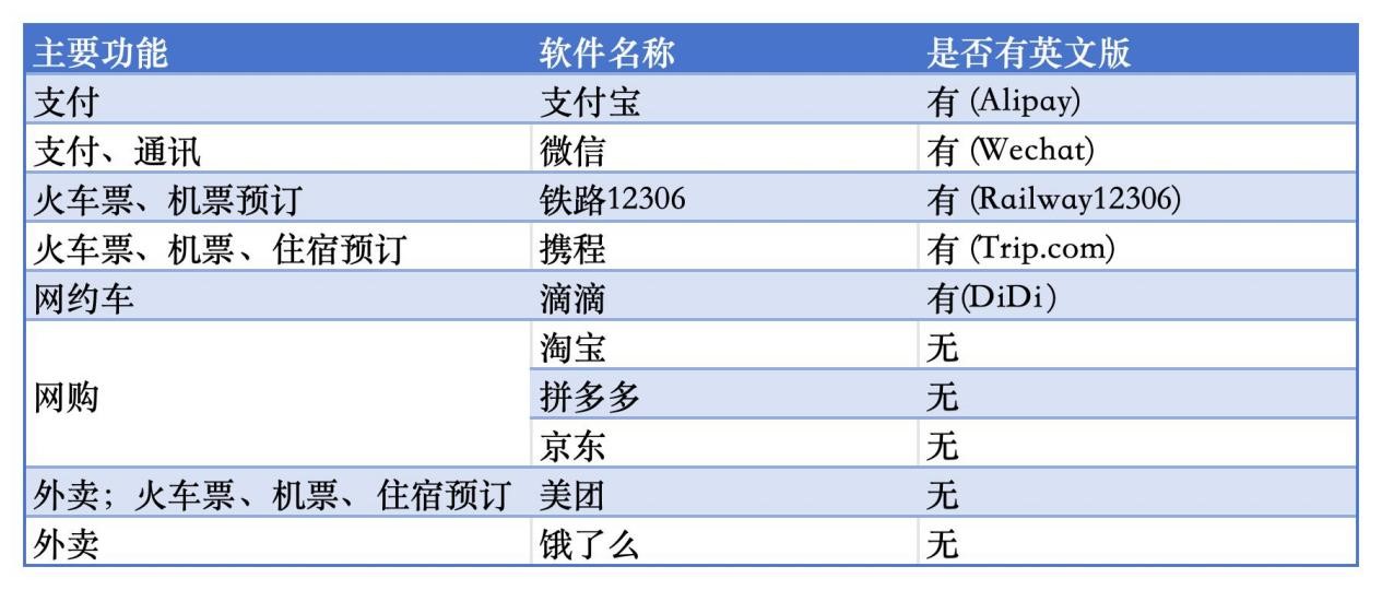 国内主流生活服务软件英文版(注:这里的“英文版”是指可以在中国提供服务版,而不是temu、面向海外市场的版本,如aliexpress。)