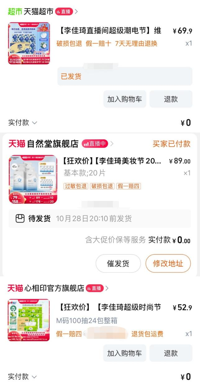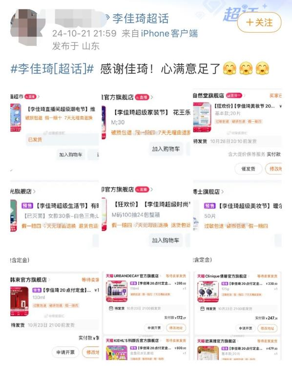 一些消费者通过小红书、微博等社交平台分享,表示从今年平台预购前夕到现货销售,他们抢到的直播间红包已经超过1000元,李佳琦发的红包几乎完成了“零元购买”。