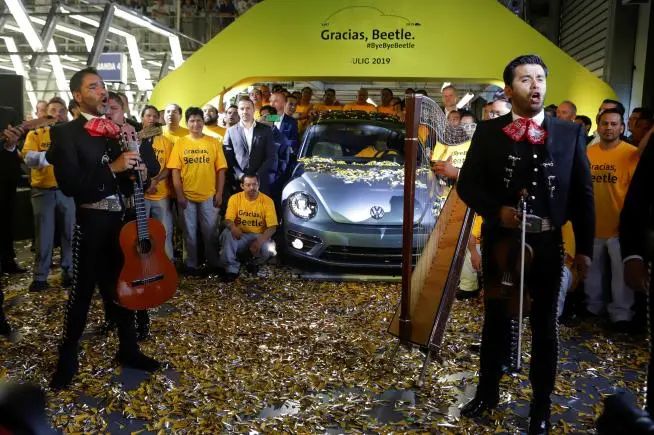 大众汽车公司位于墨西哥普埃布拉工厂,举行仪式,纪念最终版本的“甲壳虫”汽车