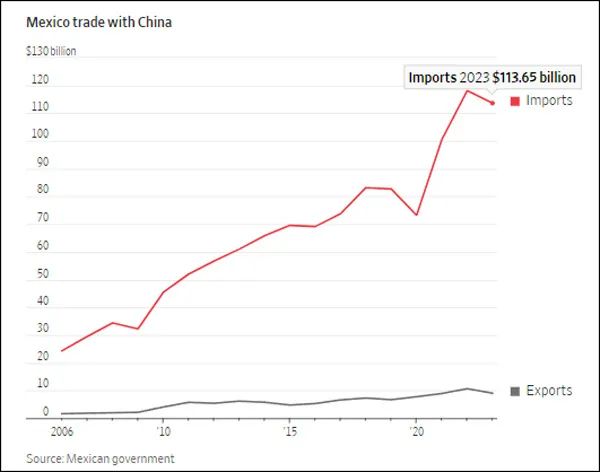 图源《华尔街日报》是墨西哥与中国的贸易往来。