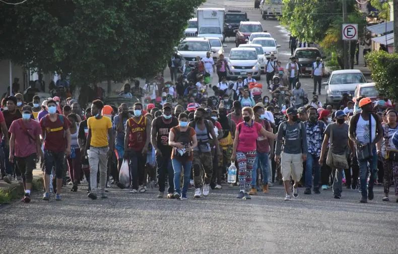 “移民大篷车”团队于2021年9月4日在墨西哥恰帕斯州塔帕丘拉向美国发展
