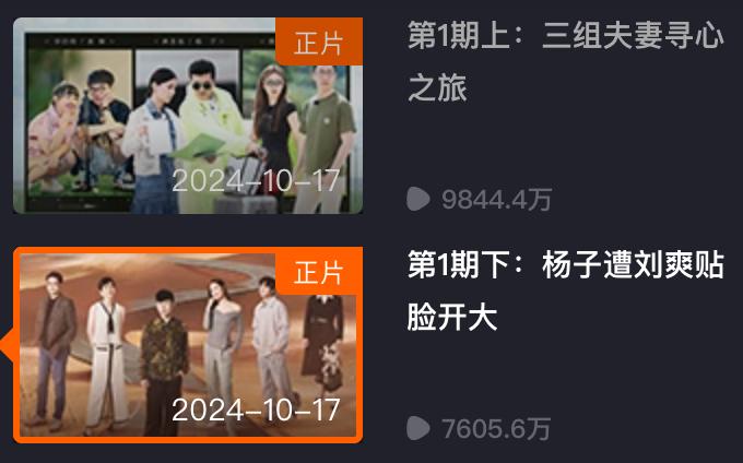 数据显示,10月17日,芒果电视播出后,《再见爱人》4的声音比前一天增加了5251%。即使在节目播出后的第三天,关于杨子的讨论也开始下降,他的关注度仍然远远高于过去。