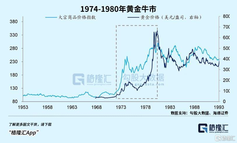 因此,1973年解禁后,被人为抑制的黄金价格在短短两年内翻了四倍。到了1980年,黄金价格迅速达到850美元/盎司,但很快减半。
