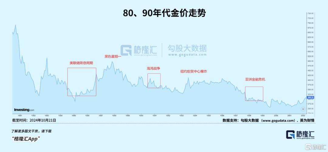 在此期间,拉美经济危机、两伊战争、黎巴嫩战争、海湾战争、911、由于“避险”的特点,阿富汗战争等重大事件的黄金价格在短期内大幅上涨。
