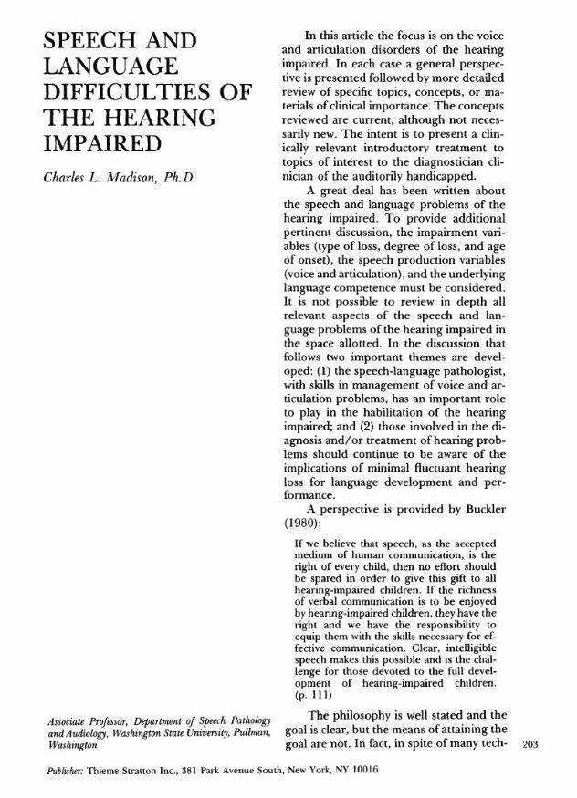 美国听力学会 1984 2008年的一篇论文,已经开始研究听障人员的言语和语言障碍。