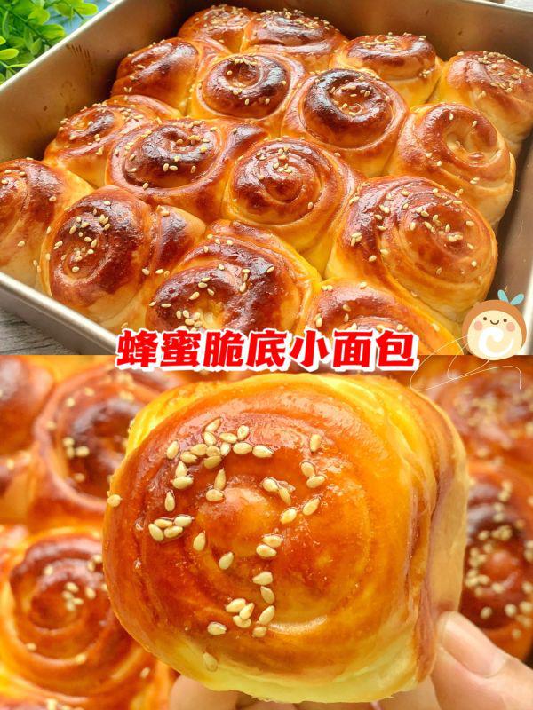 5、蜂蜜脆底小面包✅自制早餐零食烘焙,零难度