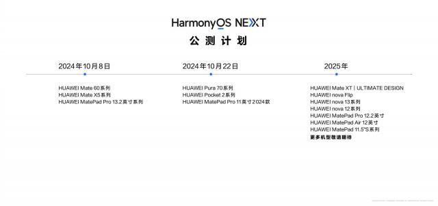 在新闻发布会上,华为宣布将开启华为原生鸿蒙系统 Pura 70 系列、华为 Pocket 2 系列和华为 MatePad Pro 11 英尺 2024 三种设备的首测。同时,华为 Mate XT 非凡大师、nova flip、nova13 更多的设备,如系列,也将陆续出现 2025 每年都要参加首测。华为也将是第一批 100 提供一万名首测客户 8 款式启动纯血鸿蒙系统首测,总额超过 500 元。