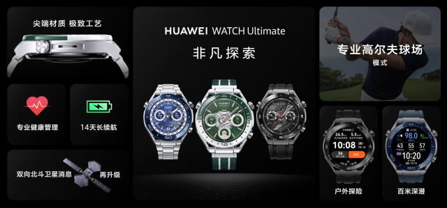 此外,华为 WATCH Ultimate 非凡探索绿野传奇也正式发布,价格 7999 元。这款手表采用绿白配色设计,融入绿白两色纳米微晶表圈,工艺难度较大,表壳采用创新超强非晶锆合金材料。同时,手表标配钛合金表带,并附有两条特色表带,给佩戴者带来非凡的风格。