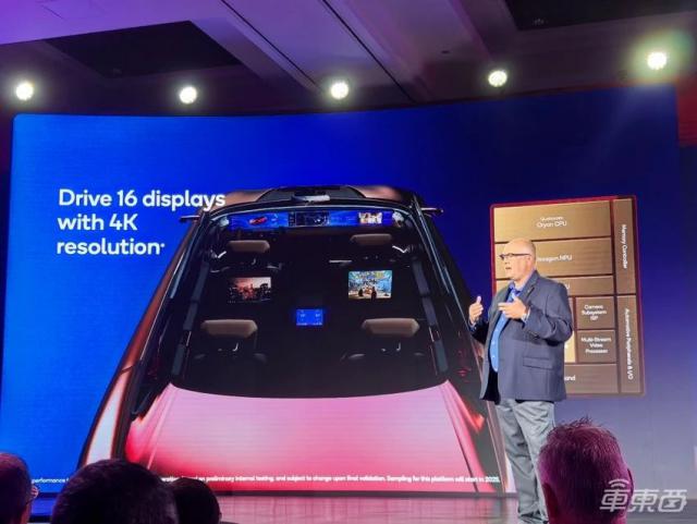 ▲高通骁龙座舱的至尊版平台可以驱动 16 块 4K 屏幕
