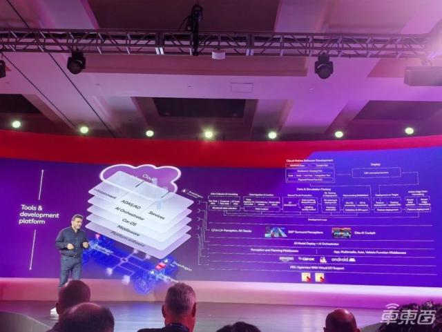 而且这次发布会,几乎全面展示了高通在汽车领域的丰富产品组合,包括 SoC 还有硬件、软件(包括中间件和其他应用程序)等完整的软件栈,、云平台,以及利用 AI SDK 建造一个完整的全栈。